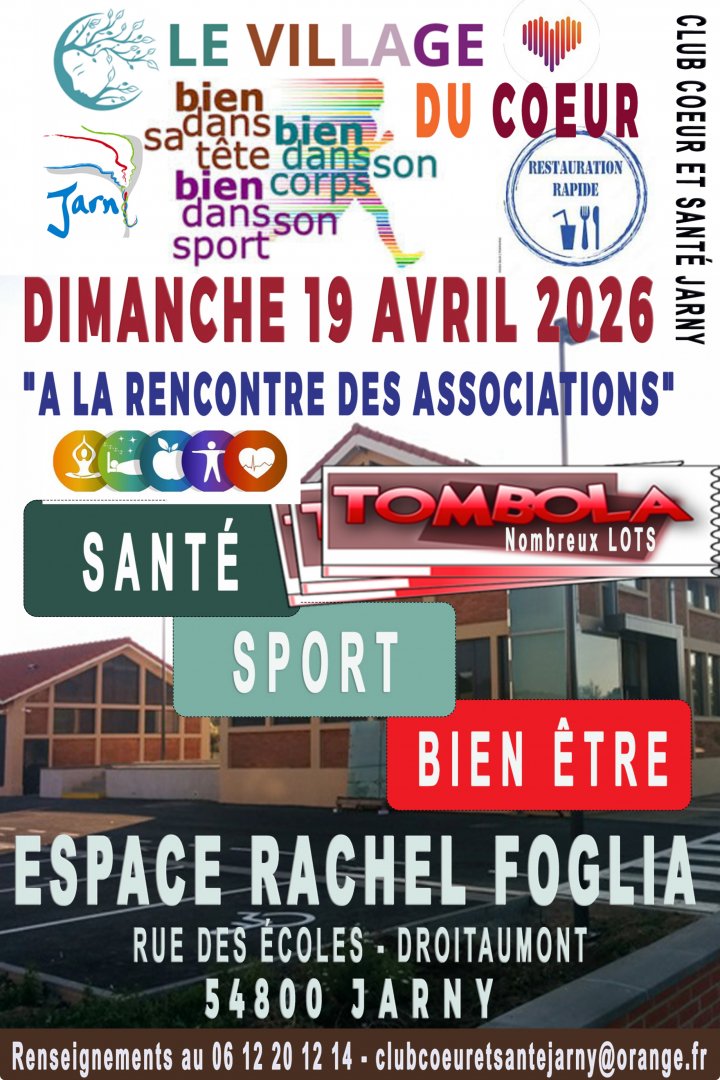 Sur place, vous pourrez aussi profiter du Village du Coeur « À la rencontre des associations » (santé / sport / bien-être), ainsi que d'une tombola (nombreux lots) et d'une restauration rapide.Infos & contact : 06 12 20 12 14 ou par mail : clubcoeuretsantejarny@orange.fr
